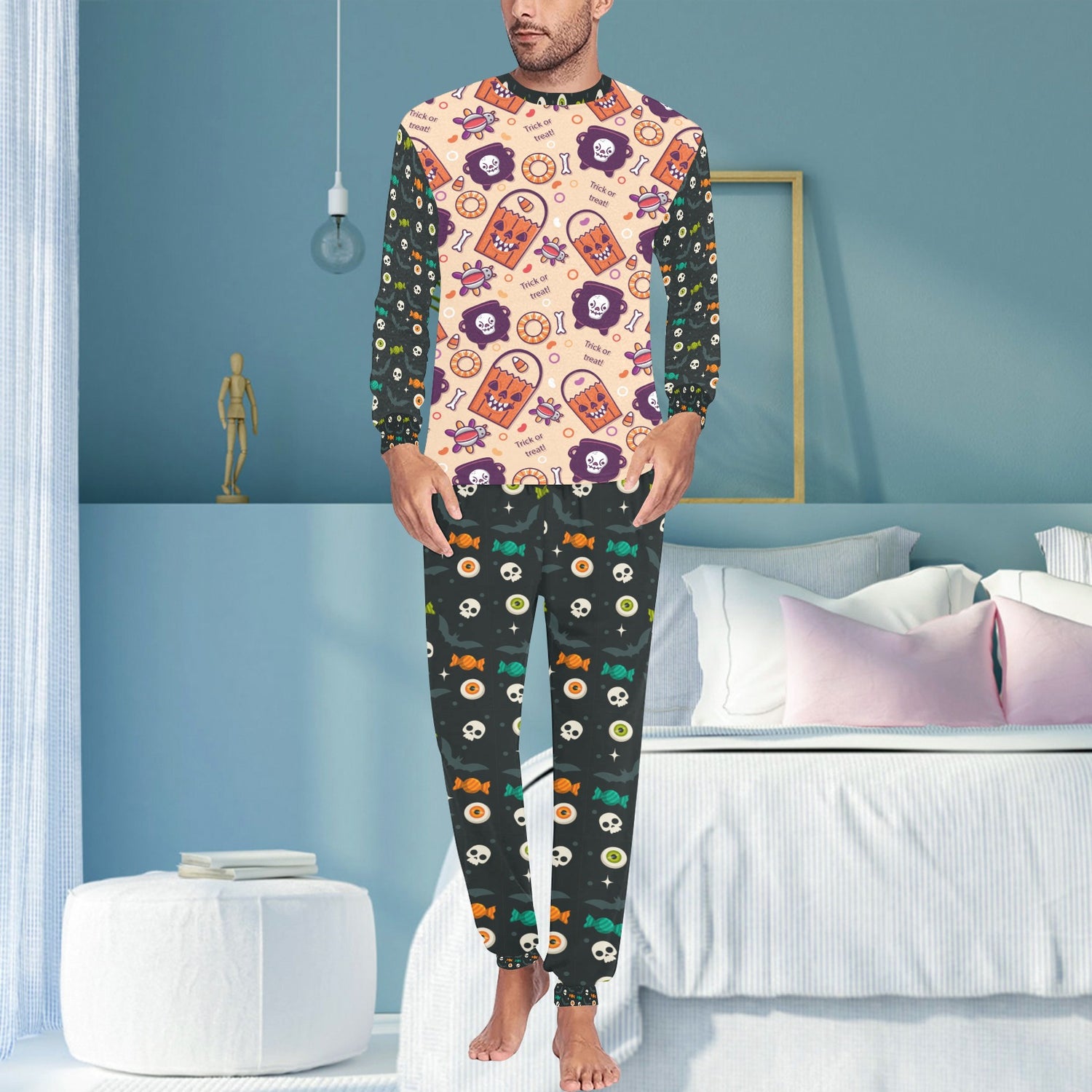 【Product Description】Contructed with 100% polyester.Using high quality cloth for cutting, jacket is round collar design, simple and generous. Two-piece pajamas are suitable for men to wear at home. They are made of comfortable and smooth fabric, soft and skin-friendly, with good air permeability. Unique design pattern highlights personalized style.