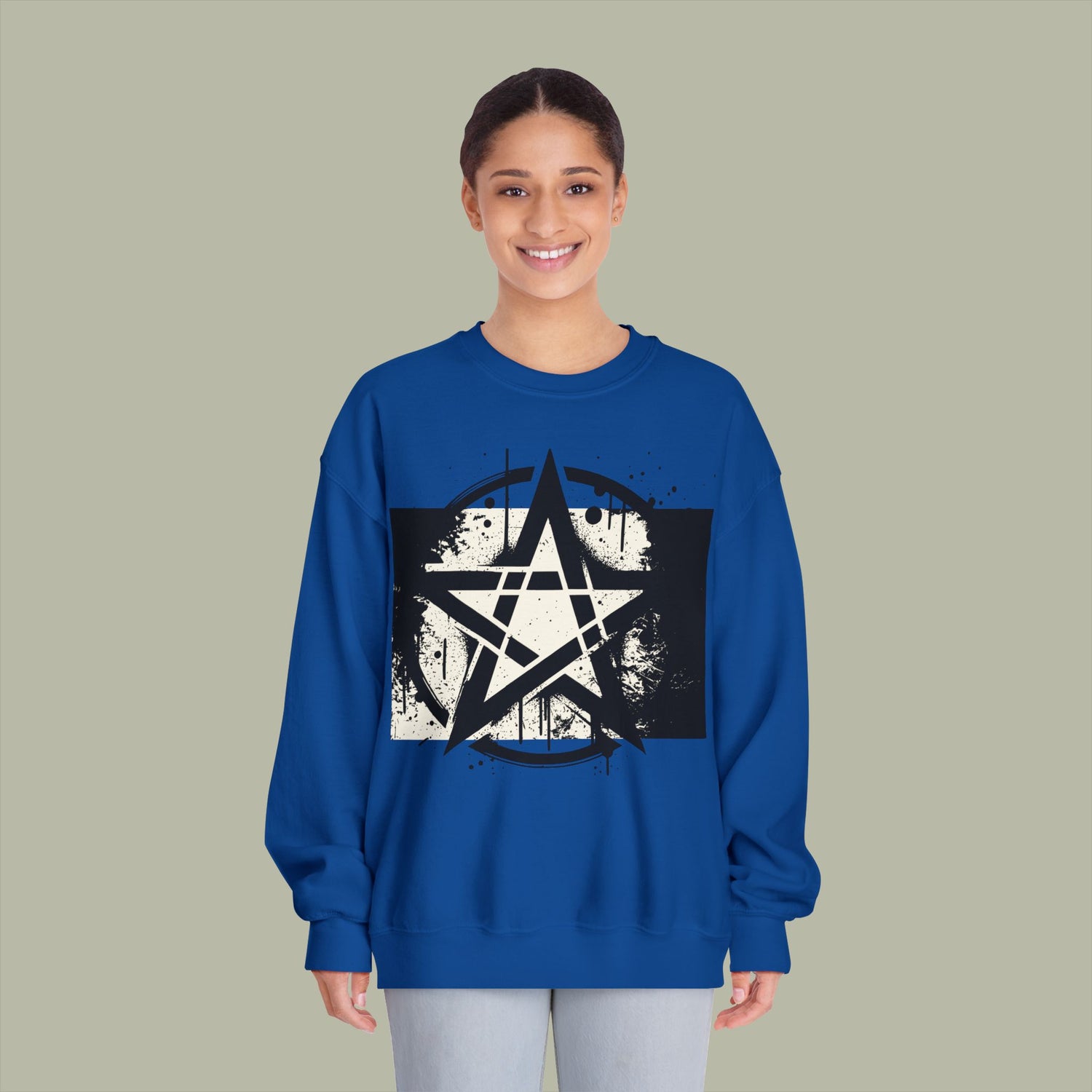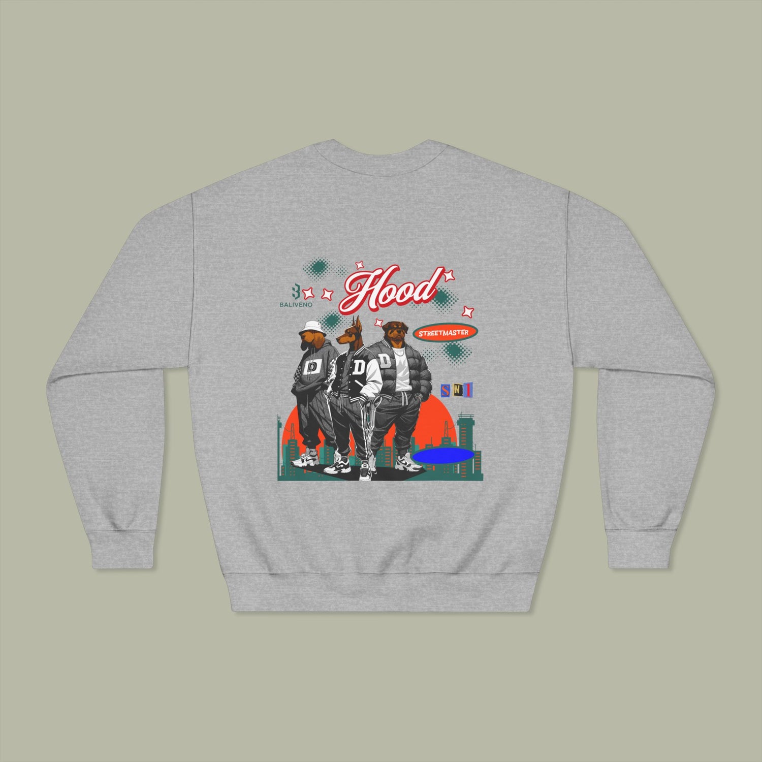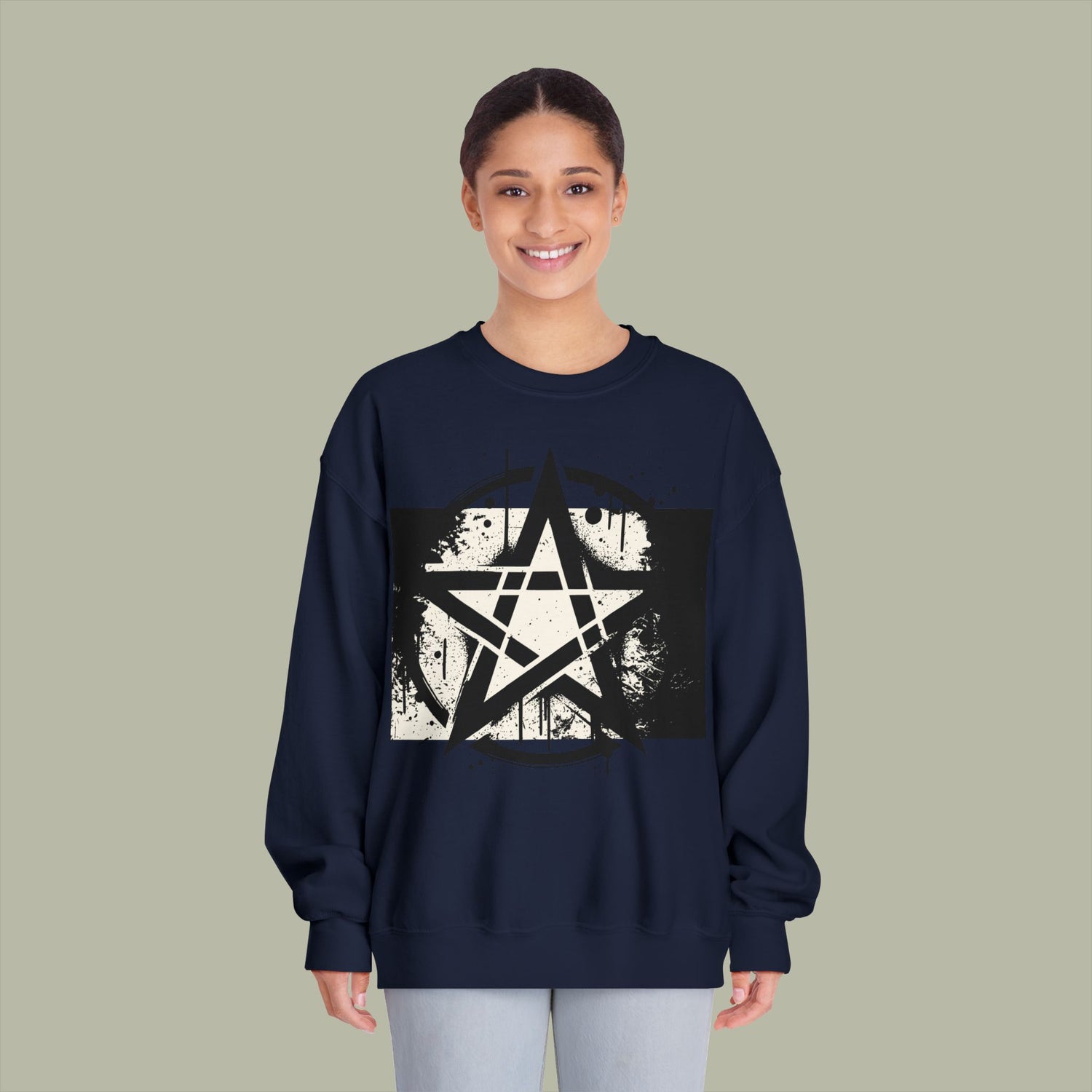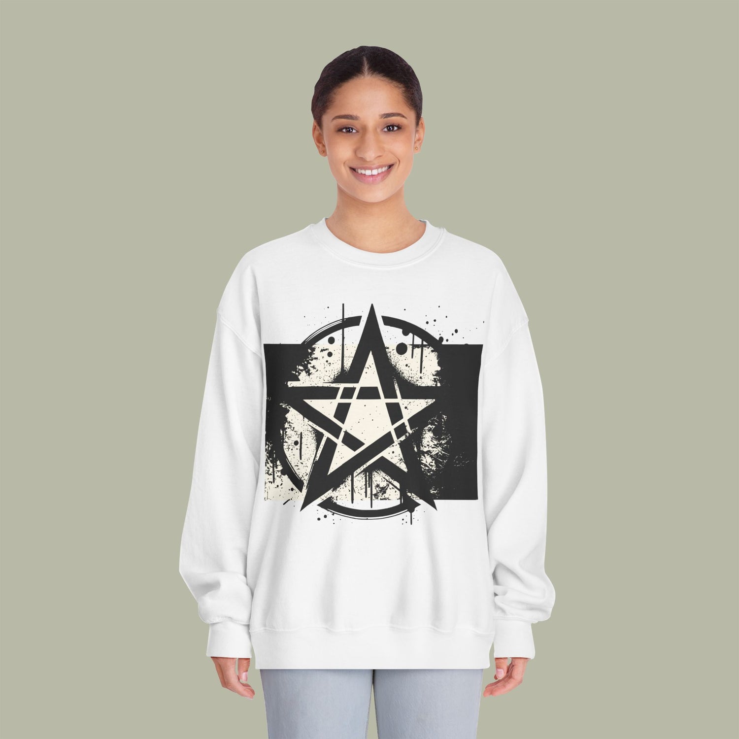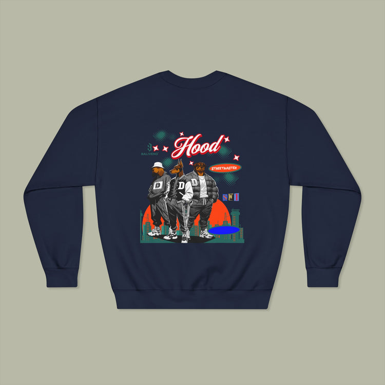 Vintage Pentagram Rock Nation Mentality Unisex Crewneck Sweatshirt — Retro 'Hood' Graphic Back