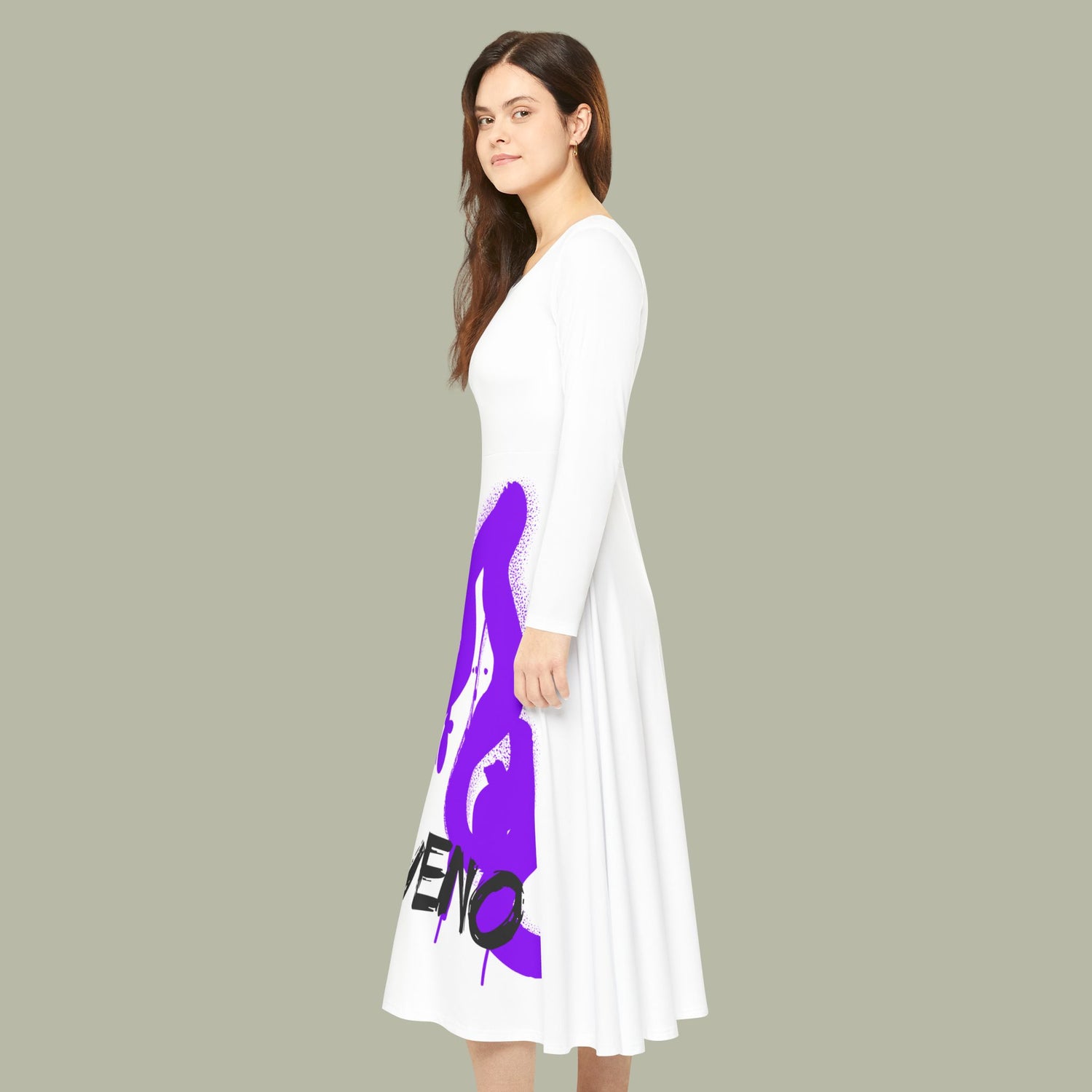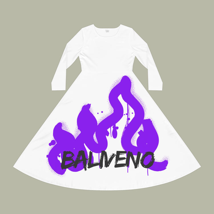 Dance Dress — White Long Sleeve AOP with Purple "BALIVENO VIVE" Graffiti Dance Dress