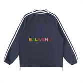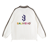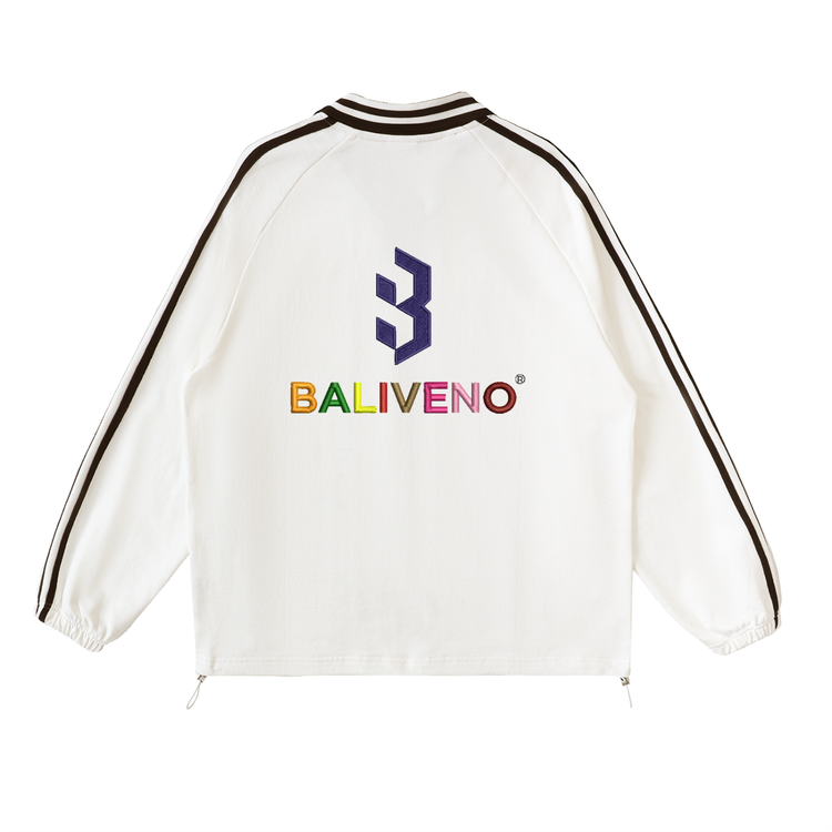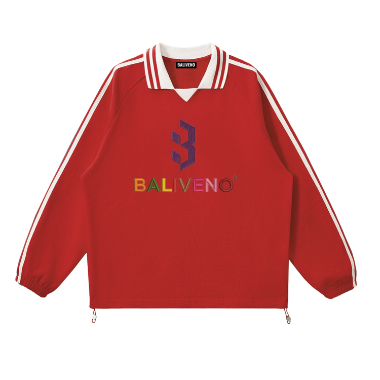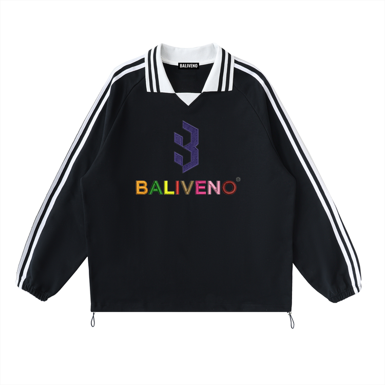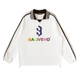 Contrast Striped Lapel Collar Sweatshirt