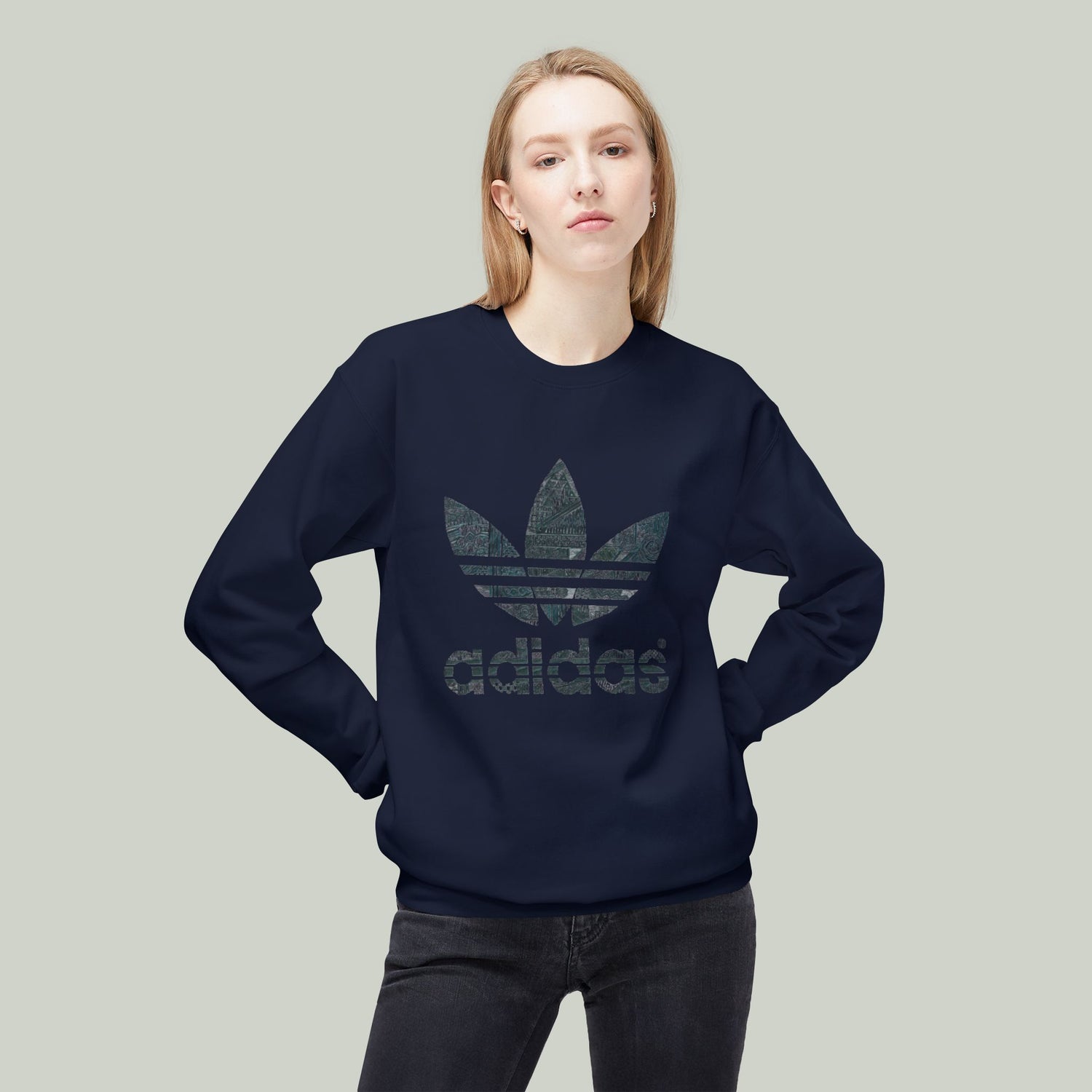 A midweight Crewneck Adidas Sweatshirt that feels like a quiet, familiar hug. The soft ring-spun cotton blend settles in with a relaxed drape thanks to dropped shoulders, while ribbed cuffs and hem hold shape without pinching. The clean, tubular construction gives a smooth side-seam-free silhouette that layers easily over tees or under a jacket. Wear it on slow mornings, last-minute city walks, or low-key meetups — it settles into the background while the day unfolds. The printed neck label and tear-away tag keep the inside comfortable, and the substantial 8.4 oz fabric gives both warmth and structure without feeling heavy.