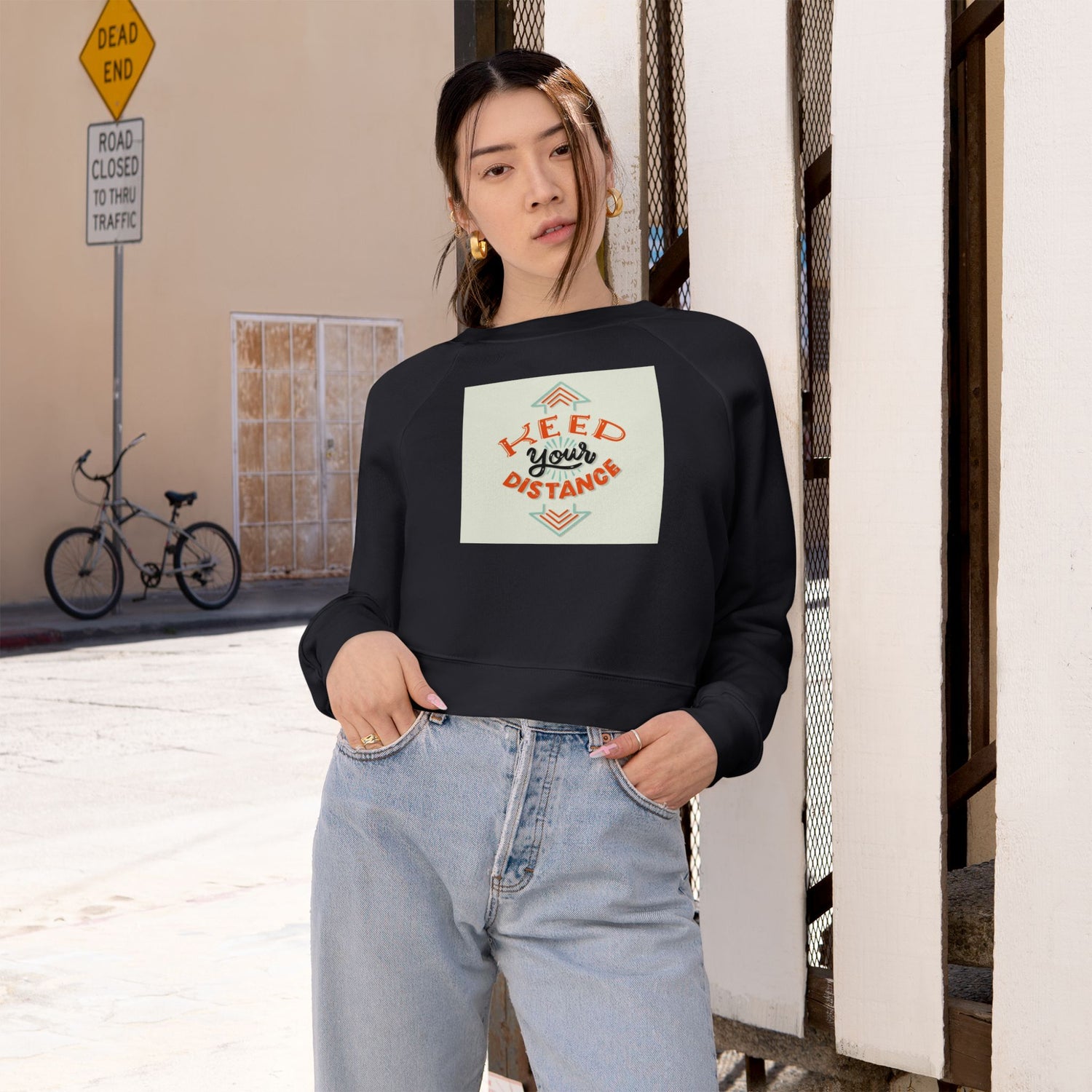Cropped Pullover — "Keep Your Distance" Retro Graphic