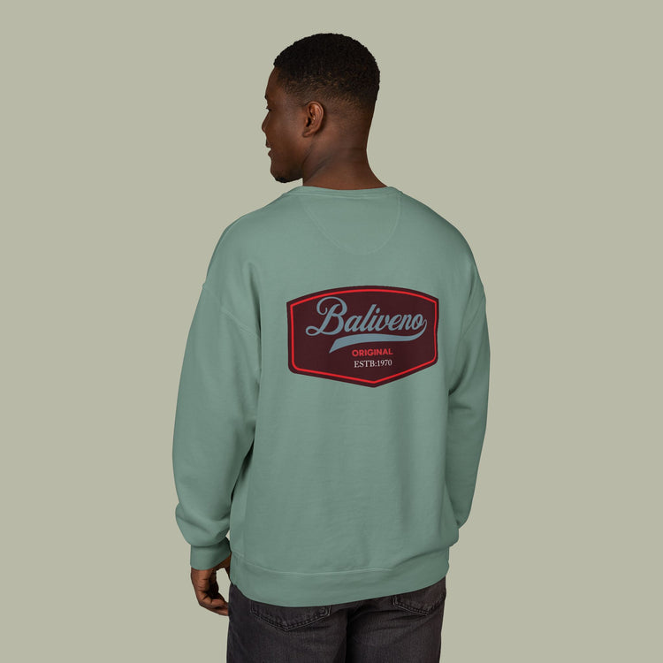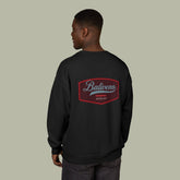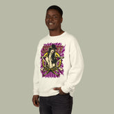 A vintage-inspired crewneck that feels lived-in from the first wear. This midweight sweatshirt pairs garment-dyed softness with a bold, retro graphic: a pinup-style figure framed by a star and crossed revolvers on the front, and a stitched-patch logo on the back. The fleece interior keeps you warm without bulk, while the lay-flat collar and reinforced seams hold their shape through everyday wear. Wear it over a tee for late-night drives, to add attitude at a gig, or layered for cool-weather city wandering. The washed finish and vivid DTF print give each piece a slightly unique, nostalgic look that fits a laid-back, rebellious wardrobe.