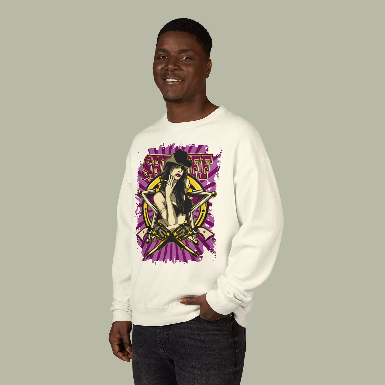 Graphic Lady Smoker Sweatshirt — 'Sheriff' Pinup Design with Back 'Baliveno'
