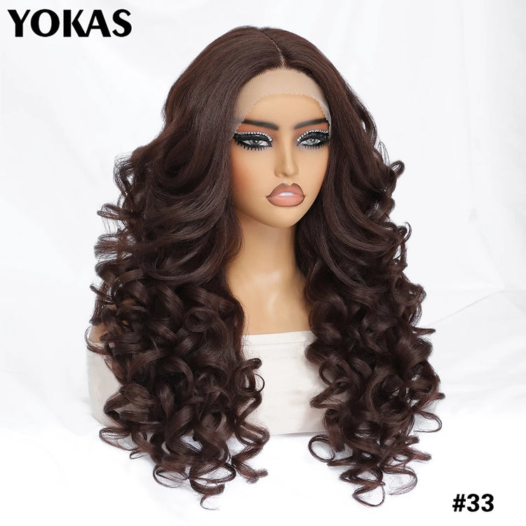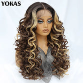Lace Front Wigs 13X5X1 Latisha Synthetic HD Curly Pre Plucked Lace Front Wigs With Bangs For Afro Women Highlight With Baby Hair