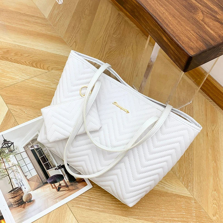 Women's Bag Fashion Large Capacity Tote Bag Wavy Grain Daily Commute Handbag two-piece
