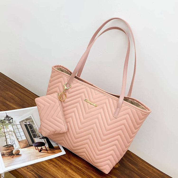 Women's Bag Fashion Large Capacity Tote Bag Wavy Grain Daily Commute Handbag two-piece